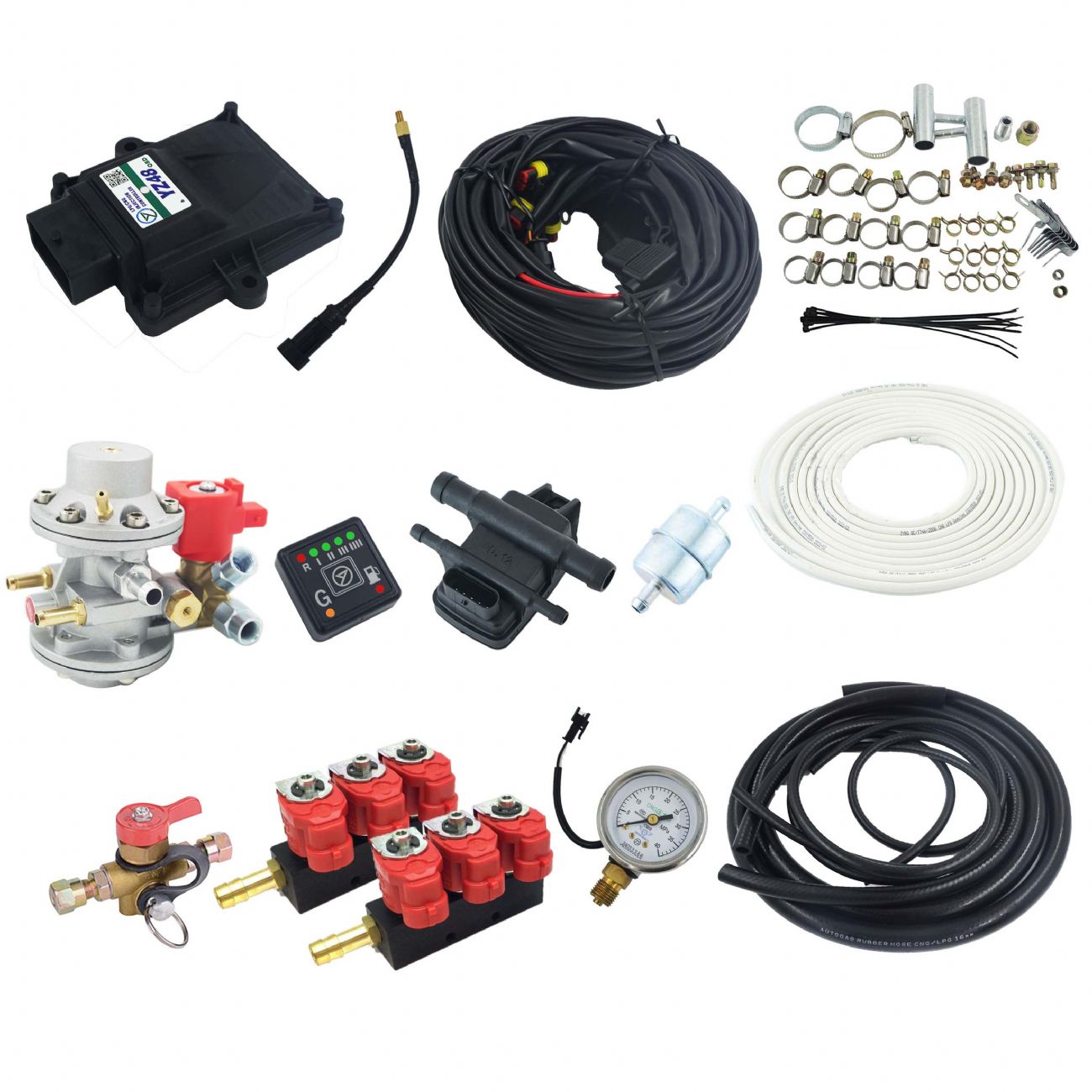 YZ48-6C OBD Autogas conversion system includes YZ48-6C OBD ECU control unit, change-over switch, wiring harness, gas pressure sensor, temperature sensor, regulator, injectors rail, filling valve, filter, high pressure pipe, pressure gauge, gas pipe, bag of accessories, etc.