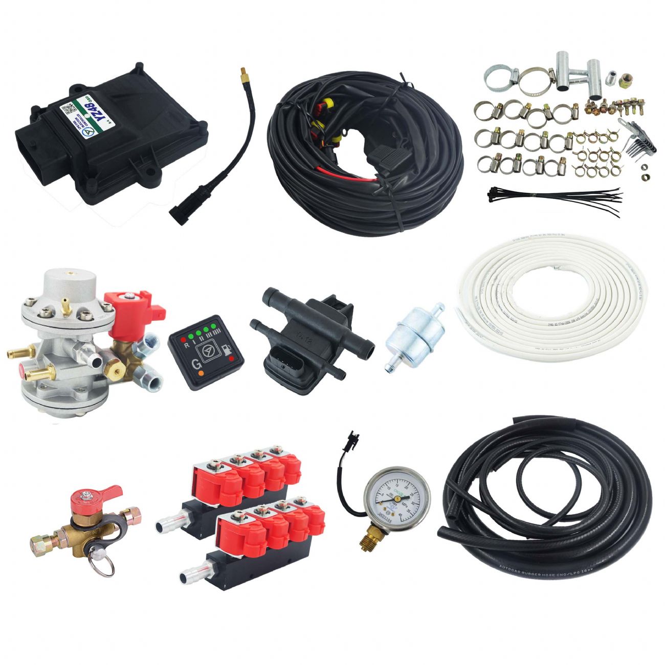 YZ48-8D OBD Autogas conversion system includes YZ48-8D OBD ECU control unit, change-over switch, wiring harness, gas pressure sensor, temperature sensor, regulator, injectors rail, filling valve, filter, high pressure pipe, pressure gauge, gas pipe, bag of accessories, etc.